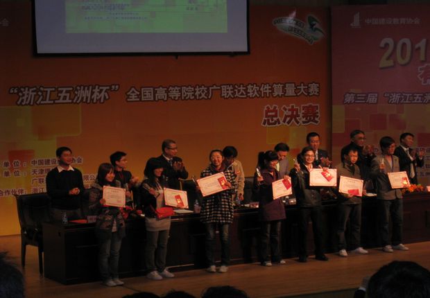 由中国建设教育协会主办的第三届“浙江五洲杯”全国高等院校广联达软件算量大赛于10月25日在天津理工大学举行。来自华中科技大学、武汉理工大学、天津理工大学、江西理工大学、沈阳建筑大学、大连民族a片