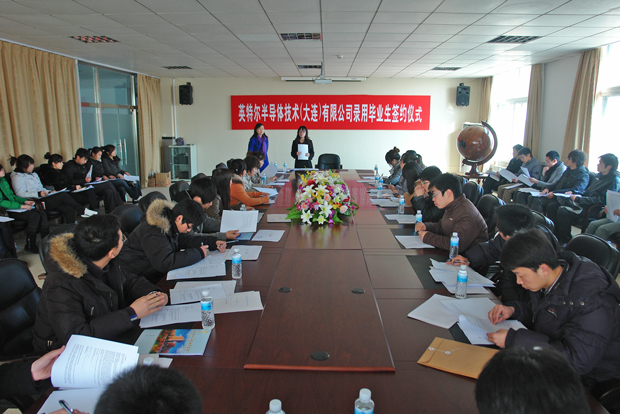 3月10日上午9时许,一场别开生面的集体签约仪式在我院8楼会议室隆重举行,66名分别来自大连工业大学、大连交通大学和我院的2010届毕业生在这里与国际知名企业英特尔公司签订就业协议,成为这家跨国企业大连工厂的一名员工。其中来自我院的学生共有27人。