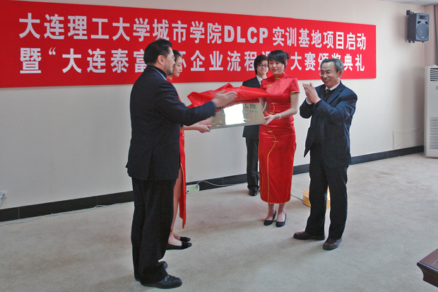 在全场热烈的掌声中,与会领导为参加“大连泰富杯”企业流程设计大赛的优胜者颁发了奖品。