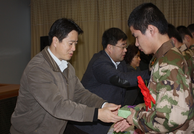 副院长薛徽宣布了2009年新兵应征入伍名单。随后,学校领导为参军入伍的同学佩戴红花并赠送纪念品。