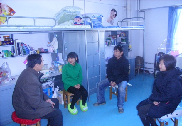 宋丽英老师的陪同下来到学生宿舍,看望为重症甲流患者献血的夏银燕、刘朋和张苏容同学,转达了a片