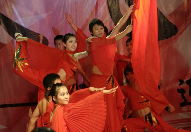 的舞蹈《红旗颂》让在场观众热血沸腾;普兰店特殊教育学校艺术团表演的舞蹈《春天的律动》将晚会推向高潮,少儿艺术团成员虽然听不见声音,但却可以在无声的世界里欢快舞蹈,使得同学们感受到生命的尊严和自信的力量,全场观众用手语打出“你们是最棒的”,表达了城院学子对自强不息、勇于拼搏精神的赞许。