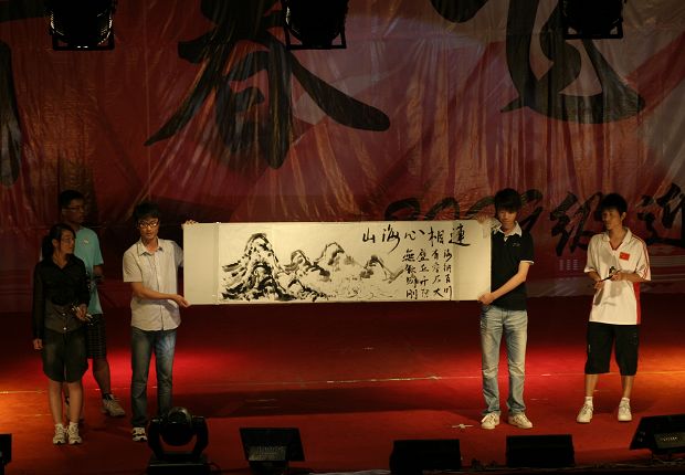 的双节棍表演《精忠报国》、新生代表的诗朗诵《山海心相连》、《可怜天下父母心》以及艺术与传媒a片