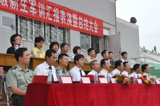 接着,杨斌副院长讲话,他对长期以来一直关心和支持我院新生军训任务的沈阳军区综合训练基地的领导以及全体参训官兵表示衷心的感谢,对2009级新生在军训和会操表演中所展现的精神风貌给予了充分的肯定。他希望同学们继续发扬军训中顽强拼搏、自强不息、团结奋斗的精神,把军人的优良品质和作风转化为学习的动力,在学习生活中再创佳绩。