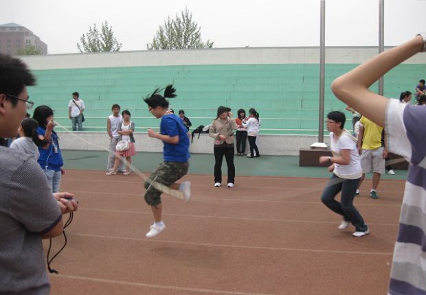 (集体跳绳比赛竞争激烈)