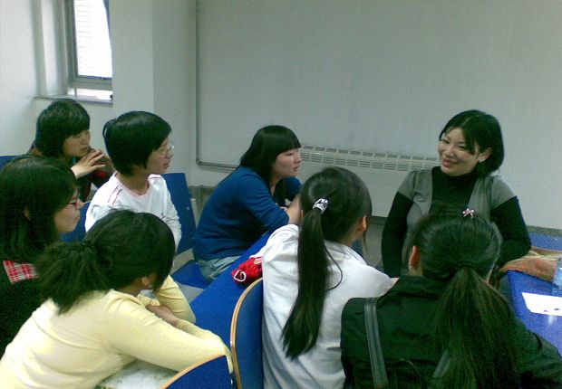 (日籍外教勝俣貞子老师与日语学习爱好者进行交流)