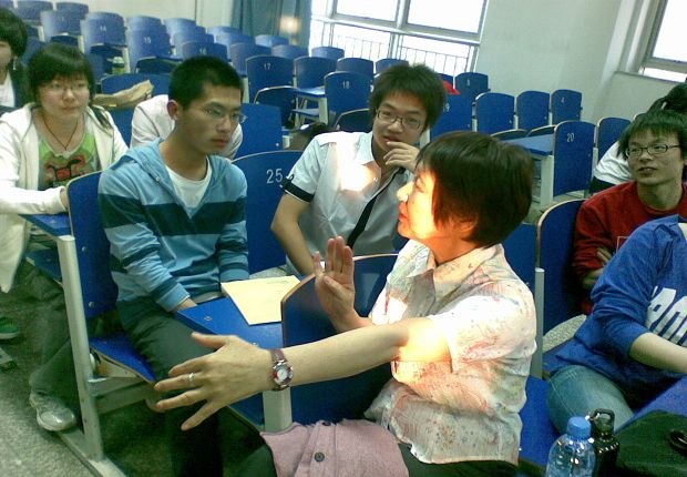 (日籍外教逆瀬川志野老师和学生亲切交谈)