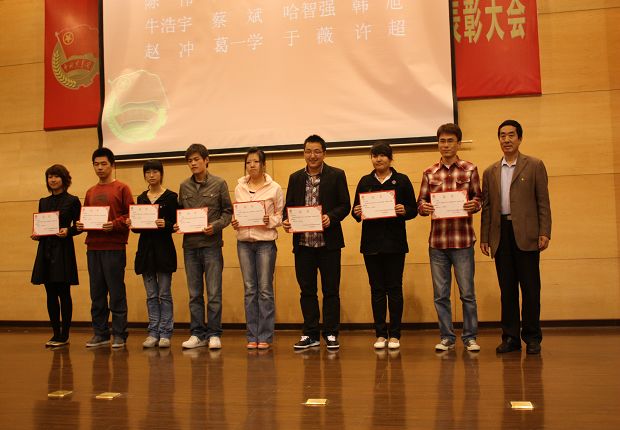 随后,院团委书记赵姝婕宣读了大工城团奖发[2009]1号文件《关于2008年度共青团学生奖励的决定》,共表彰五四红旗团委1个、先进团委2个、社会实践优秀团队2个,优秀团学干部16名,与会领导为获奖者颁发了奖状。