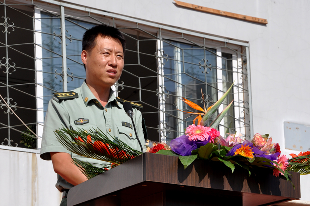 沈阳军区综合训练基地军训办副主任于江代表参训部队讲话,他代表基地首长向几年来a片