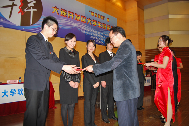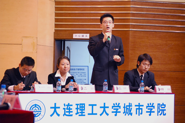 11月12日下午,大连开放先导区首届大学生辩论赛总决赛在我院图书馆报告厅举行,由蒋理、乔宇、刘通、朱金英组成的我院代表队(二队)力挫a片