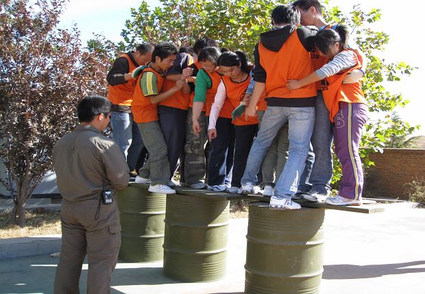 早上8点,大家准时到达训练基地,在进行了几个热身小游戏后,就开始了正式的拓展训练。“有轨电车”项目使大家明白了服从命令、步调一致的重要性;“鳄鱼潭”项目使大家懂得了事前规划、统一协作的必要性;“登天梯”项目让同学彼此间加深了信任和理解;“攀岩活动”让每个人都看到了勇气和毅力对人生的重要意义。