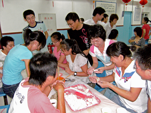 联谊会上,学生指导部严超民老师、软件工程系暴丰老师、物流管理系付亚林老师等九位老师与同学们一起品尝月饼,唠家常。老师们亲切询问同学们的家庭状况、学习情况,鼓励大家要自立自强。在联欢活动中还进行了包饺子比赛,大家吃着自己亲手包的饺子,欢声笑语,其乐融融。