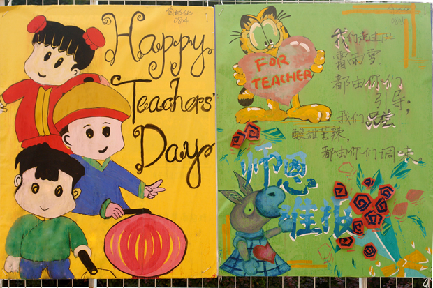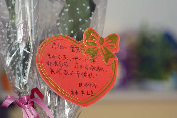 有的学生在贺卡上写到:“万水千山总是情,洒向人间都是爱,天涯海角有尽处,只有师恩无穷期”;有的学生在贺卡上写道:“一个个日子升起又降落,一届届学生走来又走过,不变的是您深沉的爱和灿烂的笑容,祝福您,亲爱的老师,节日快乐”;有的学生写到:“尊敬的老师,是您用黑板净化了我的心灵,是您用粉笔在我黑板一样的脑海里增添了智慧,衷心祝福您幸福到永远”;还有的学生写到:“老师,感谢您用自己的生命之光,照亮了我的人生旅途,对您我满怀感激之情”……