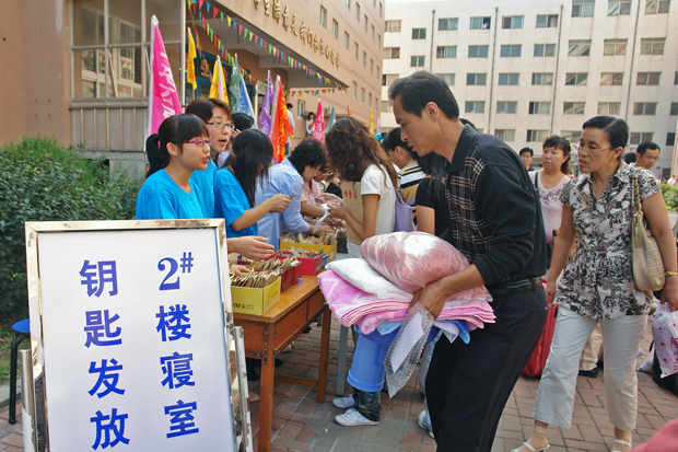 教学楼内各院系设立的新生注册登记处也是一派繁忙景象,各分院院长、系主任亲自上阵,各位新生导师更是忙得不可开交,他们与自己的新“弟子”们一个个见面,为他们登记注册,解疑释惑,使他们能够尽快熟悉新的环境,尽快融入新的集体,尽早开始大学生活。