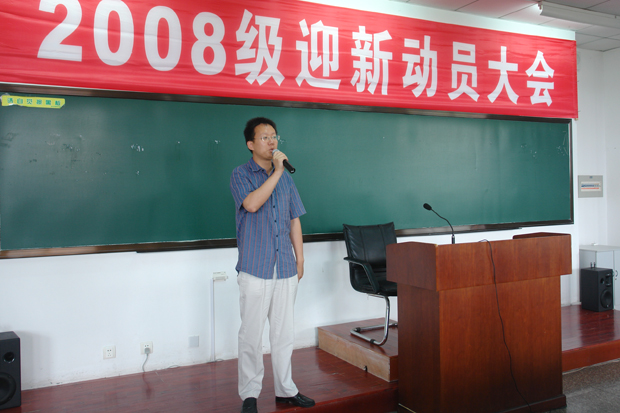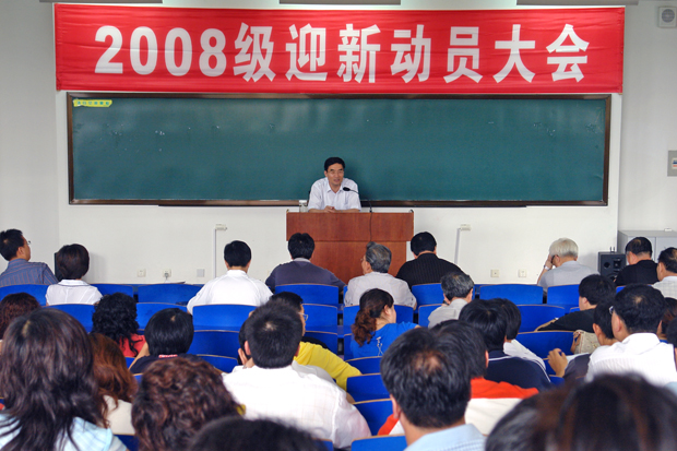 2008级迎新动员大会7月10日下午1:30在1108教室举行,院长唐志宏,副院长杨斌、王铁成,院长助理沈海龙、李宪起等院领导出席会议,近200名有迎新任务的教师参加了会议。