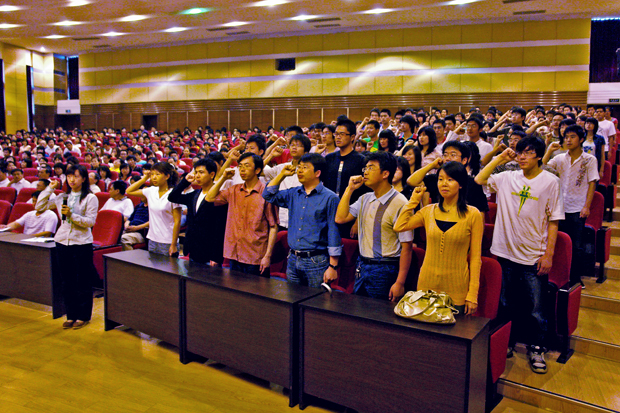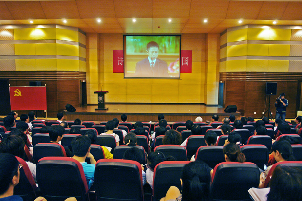 观看抗震救灾英模事迹报告会前,全院120名预备党员(教师预备党员6人,学生预备党员114人)面对党旗,庄重宣誓。郭玉铸书记、王铁成副院长、院长助理李宪起及党外人士院长助理马建军、管理a片