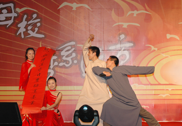 管乐队演奏的《友谊地久天长》和《拉德斯基进行曲》中拉开帷幕。随后,乐队演奏的两首歌曲:《明天,你们要走了》,激情中略带伤感,唱出了每位毕业生对母校的不舍与留恋;《我的未来不是梦》则唱出了毕业生对美好未来的浓浓期待。相声《老姜新笋》,诙谐幽默,令人捧腹,体现了师兄弟间的深厚友谊。由外国语a片