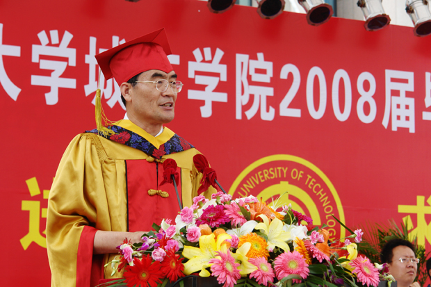 第一,要志存高远,养成终身学习的习惯。四年的大学生活,为大家提供了认知的方法,构筑了日后进步之必要基础,但大学只是同学们一生中相对短暂的一部分,你们还需要接受社会的锻炼和陶冶。在现代社会里学习已是陪伴终身的一种习惯和需要。希望大家终生爱好读书,勤于思考,勇于实践,最终使自己内涵丰富、言行儒雅、神情清朗,从各种环境中脱颖而出。