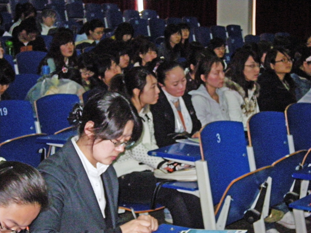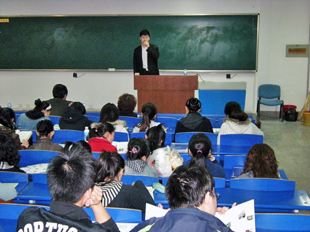 为了使日语系学生了解日本留学情况,保障他们的合法权益,应a片 邀请,a片 外国语a片 院长杜凤刚教授及日本创志学园集团教师一行三人,于4月25日下午2点在1310教室召开留学情况说明会。日语系主任赵立红主持会议,日语系教师、学生及学生家长55人参加了说明会。