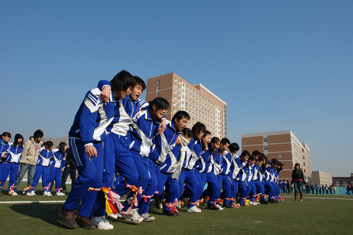 体育场举行。“600人大众广播体操”表演首先登场,这个由全院16个系07级部分新生组成的600人方阵,朝气蓬勃,动作整齐,给这个萧瑟的冬天增添了一道靓丽的风景。广播体操结束后,进行了“阳光24人”绑腿跑比赛。这项活动将24名参赛者的双脚依次绑在一起,24人并足进行五十米短跑比赛,体现了同学们的竞争意识和团队协作精神。