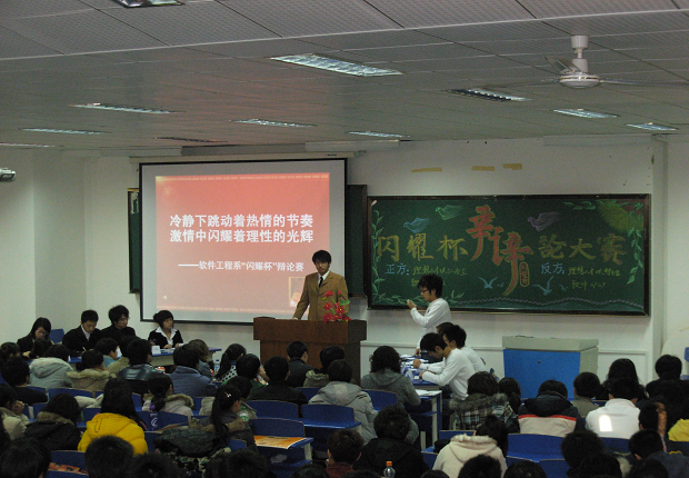 为丰富同学们的课余文化生活,提高同学们的语言表达和应变能力,软件工程系学生会举办了第二届“闪耀杯”辩论赛。经过为期2周14场预赛和复赛的唇枪舌剑,最终软日0702班和软件0707班进入了最后的决赛。
