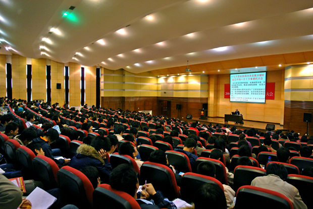 在图书馆报告厅召开学习贯彻十七大精神辅导报告会,邀请工商管理系教授罗均炎为全院干部、党员和入党积极分子作贯彻十七大精神辅导报告。全院各部门、院系负责人,全体党员和入党积极分子500多人参加了会议,院党委书记郭玉铸、副院长徐循、王新平出席了大会。会议由党群工作部主任刁庭元主持。