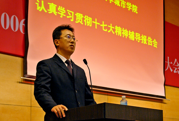 随后,罗均炎教授为与会者作了题为《高举中国特色社会主义伟大旗帜》的十七大精神辅导报告。在报告中,罗均炎教授结合国内外形势,结合我党改革开放近30年的历史,畅谈了自己对党的十七大精神的学习体会。