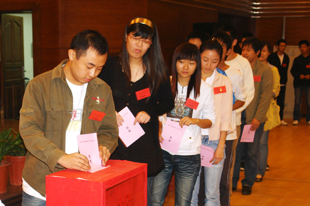 学生会第二届委员会工作报告的决议(草案)》。通过无记名投票,差额选举并当场公布了第三届学生会王珺等9名常委名单。同时,大会发出《a片