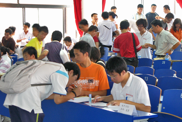 也是匠心独具:报到室外的墙壁上悬挂了历年来该院评优获奖学生的展板,以此来激发新生们的学习热情和争当先进,敢为人先的斗志。而报到室四周的大红色条幅和大学生志愿者们的大红色上衣,更是使所有前来报到的新生和家长们感受到来自管理a片