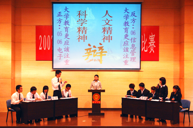 团委主办,共有15支队伍参赛。比赛采取淘汰赛制,分为初赛、复赛、半决赛、决赛四个阶段,为期一个半月。15支参赛队伍经过唇枪舌剑,最后闯入决赛的是05、06电子联队和06信息管理两支队伍,经过激烈角逐,最终05、06电子联队以8.35分获得了本届辩论赛的冠军,06信息管理的徐萌骋同学获得了“最佳辩手”称号。