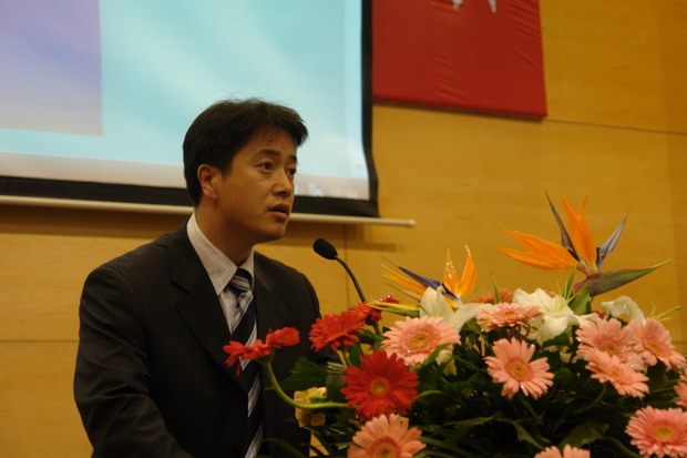 党委副书记、副院长杨斌讲了话,他对出席比赛的各位嘉宾和评委表示衷心地感谢,对获奖选手的优异表现表示热烈地祝贺!他指出,用时代主题激发当代大学生对民族、对国家的责任感和使命感,从而增强学习动力,加强校园学风建设是每个大学都面临的现实问题。本次主题英语演讲比赛参赛面广、选手水平高,其成功举办使大学生对什么是和谐社会?青年人在构建和谐社会的宏伟事业中应该承担什么样的责任和使命有了更加清晰地了解,对校园主体文化建设起到了重要作用。他号召广大同学要以此次活动为契机,自觉树立为国家、为民族服务的主人翁意识,增强学习动力,将学风建设推向高潮。
