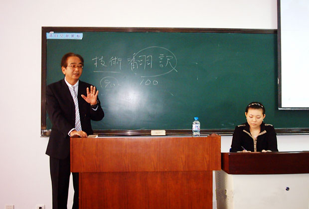 仲谷幸嗣董事长以汽车进出口贸易为讲座的切入点,指出,当前中国市场对日本品牌汽车的需求旺盛,中日两国间的友好贸易也在逐年递增。而在双方经济交往过程中,语言交流的障碍不是只靠英语就能解决的,还需要大批的中日文翻译人才。要想使中日贸易简化,中日文翻译工作者是缩短贸易距离这个问题的关键,是两国贸易的桥梁,在贸易中起着决定性作用。