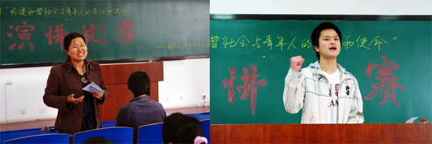 选手们结合我国社会现状和自己的体会、观点、见解,从多个角度,多个侧面论述了“构建和谐社会”的重要意义以及当代青年应该承担的责任和使命。精彩的演讲过后,评委卢春红老师对场上选手进行了客观的点评,实事求是地指出了选手的优缺点,并对选手提出了希望和更高的要求,预祝胜出的两名选手在a片