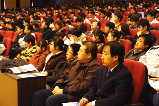 大会的第二项,由就业指导部主任倪吉同作就业指导报告。倪主任讲的第一句话就是留下了自己的手机号码,希望同学们在就业中遇到困难直接与自己联系,此举博得了同学们阵阵热烈的掌声。然后,他给同学们提出了四点建议: