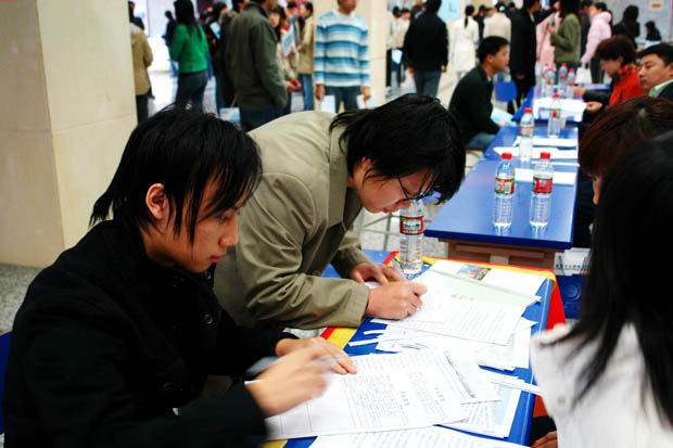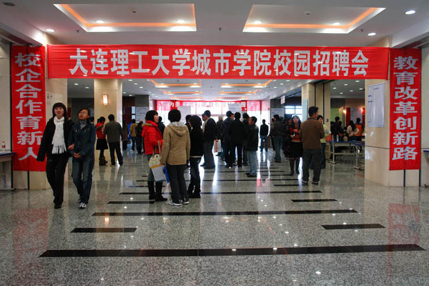 迎来了首次校园招聘会,包括大连东芝电视有限公司、东北通讯集团有限公司、大连通世泰建材有限公司、珍奥集团、大连华信计算机技术有限公司、斯大精密(大连有限公司)、大连用友软件有限公司、辽宁无线电二厂、大连宜华建设集团有限公司、大连金宸集团有限公司在内的47家用人单位在招聘现场设立展台,提供岗位328个。我院500多名07届毕业生和200多名大二、大三的同学参加了招聘会。招聘会虽然没有人山人海,但供需双方却也相谈甚欢,收获颇丰,86名应届毕业生达成就业意向。