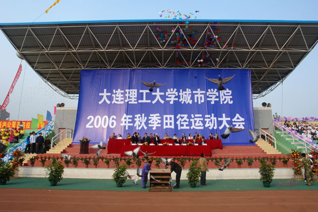 首届田径运动大会正式开始!”时,数百只五彩斑斓的气球腾空而起,近百只洁白的和平鸽展翅高翔,无数五颜六色的彩带在体育场上空飞舞盘旋,在全场热烈的掌声中开幕式气氛达到了高潮!