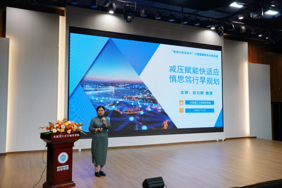 本网讯 11月21日,我院开展“大连有我·未来可期”在连大学生爱连兴连系列宣讲活动,邀请大连工业大学人才测评研究所所长谷力群教授为我院2024级学生开展了减压赋能与学业规划的讲座。