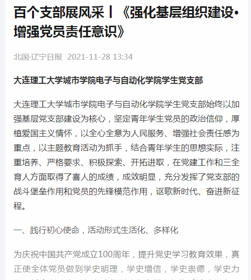 学生党支部相关事迹先后在《辽宁日报》主办的北国新闻客户端和a片