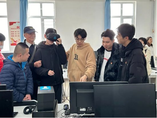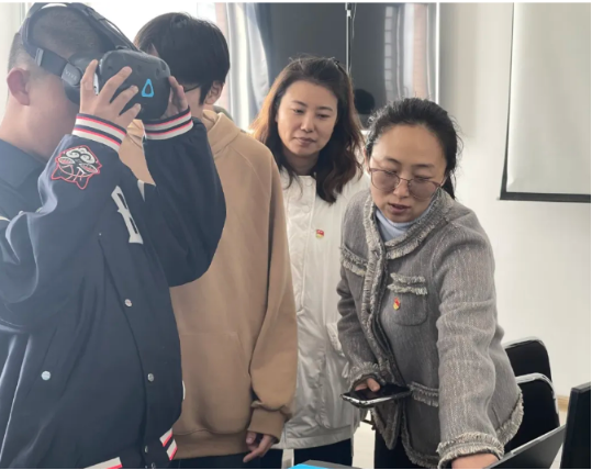 活动现场,星宝们在师生的陪伴下戴上VR眼镜,体验了由我院学生独立完成的虚拟校园数字模型,可以让他们“穿越”到校园的教学楼、图书馆、操场,身临其境地感受校园生活的点点滴滴。
