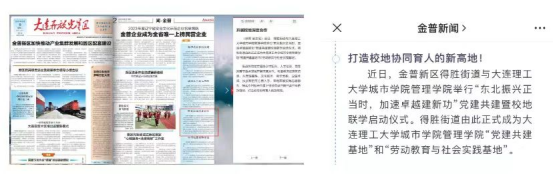 将与得胜街道党工委一起深度推进政产学研深度融合,将学生学习就业与先进装备和生命科技园区为核心的现代化产业体系结合起来,为学生提供更优良的就业环境,为推动东北全面振兴事业注入更多青春力量。
