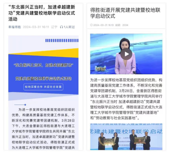 推动“研学经验”转化为“振兴经验”,探索校地党建共融共建共享的新路径,为更多优秀学子提供丰富的实践机遇,探索打造校地协同育人的新高地,奋力谱写中国式现代化辽宁新篇章。本次活动受到了金普新区的广泛关注,金普新闻、掌上金普和幸福得胜等媒体都进行了相关报道。