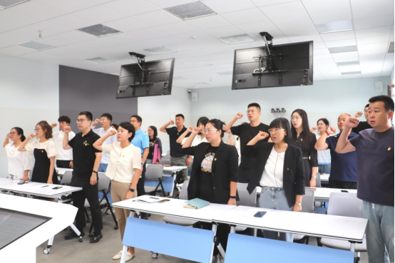 “铭记历史,勿忘国耻。以史为鉴,振我中华……”全体与会党员高举右拳,庄严宣誓。铿锵有力的誓言表达了党员们对历史的深刻理解,对国家的深沉热爱,对党的忠诚,对初心的坚守以及对未来的坚定承诺。